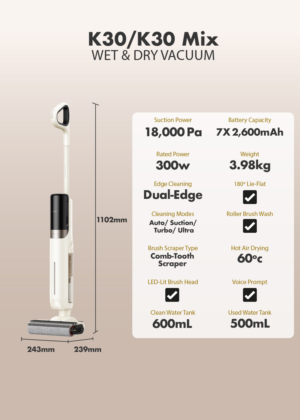 🔥 【18,000Pa Suction Power】- K30 / K30 Mix